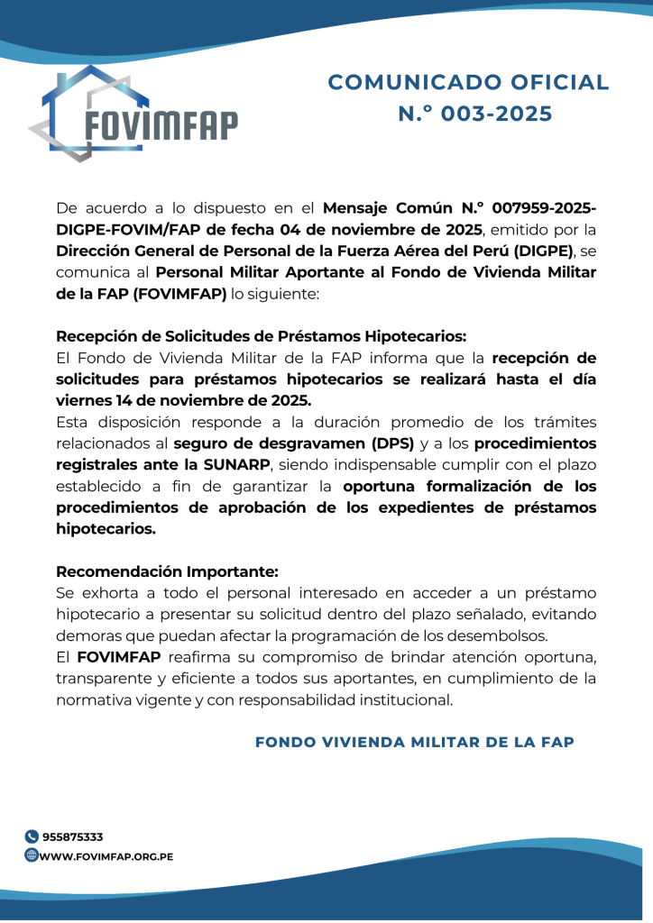 Inicio del Proyecto : 2021 Entrega de los Dptos : 2023 Beneficiarios : Personal de Oficiales Departamentos : 31 Dirección : Calle Junin 434 Distrito : MIraflores Provincia : Lima